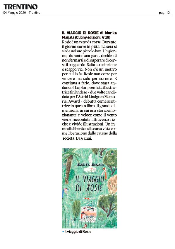 Marika Maijala è un’illustratrice e autrice di libri per bambini che vive e lavora a Helsinki. Ha illustrato albi per tutti i principali editori finlandesi e le sue opere sono state pubblicate negli Stati Uniti, Regno Unito, Giappone, Germania, Francia, Cina, Estonia, Svezia, Danimarca, India e Abu Dhabi. Ha ricevuto il premio Rudolf Koivu come miglior illustratrice finlandese di libri per bambini nel 2009 ed è stata nominata per il Finlandia Junior prize nel 2008 e 2012. Nel 2015 e 2016 le sue illustrazioni sono state selezionate nell’ambito dell’AOI World Illustration Awards e nella White Ravens List. Nel 2017 e 2018 è stata candidata per l’Astrid Lindgren Memorial Award. Il viaggio di Rosie è stato selezionato alla Fiera del Libro di Bologna 2019 per la mostra degli Illustratori.