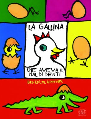 Le avventure di una mamma gallina tutta intenta ad accudire i suoi cinque piccolini, tra cui un piccolo coccodrillo, covato per sbaglio, ma amato come se fosse suo. Mamma gallina non si allontana un attimo dal suo giaciglio perché ancora non tutti i suoi pulcini sono usciti dal guscio, ma un gran mal di denti non la fa dormire e allora… sciarpa e cappello anche ai piccoli ovetti e via! Tutti dal dentista! Il dentista li visita uno a uno, ma l’unico ad avere qualche carie è il piccolo coccodrillo! Eh già, perché il nostro amico è ghiotto di caramelle e cioccolatini, ma non è di questo che si deve nutrire un coccodrillo… «E cosa devo mangiare allora?» chiede il piccolo coccodrillo. «Un po’ di carne, come ad esempio una bella gallina» risponde il dentista. Ma il piccolo coccodrillo non è certo un ingrato e ama troppo la sua mamma per immaginare di mangiare i suoi simili. Piuttosto, in un sol boccone, si sgranocchia il dentista e poi via tutto fiero insieme alla sua mamma e al suo nuovo spazzolino! Le illustrazioni sono coloratissime e adatte ai più piccoli.